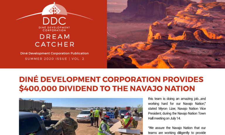 Window Rock, Arizona, For Immediate Release, July 14, 2020 – Diné Development Corporation (DDC) provided a $400,000 dividend to the Navajo Nation for calendar year